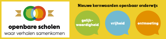 Elk kind is van harte welkom op de openbare basisscholen van Proloog. Ongeacht levensovertuiging, godsdienst, politieke gezindheid, afkomst of geslacht. Wij vinden dat elk kind telt en zijn stem mag laten horen en dat iedereen gelijke kansen heeft. Deze veelzijdigheid is bovendien leerzaam. Wederzijds respect, nieuwsgierig zijn naar elkaar en zorgen voor elkaar zijn van groot belang op onze scholen. Zo houden we het leuk met elkaar en gaan alle leerlingen elke dag met plezier naar school. Vrijheid, gelijkwaardigheid en ontmoeting; dat zijn de kernwaarden van openbare scholen. In het openbaar onderwijs komen verhalen samen. (klik op de afbeelding hieronder voor meer uitleg over de drie kernwaarden):